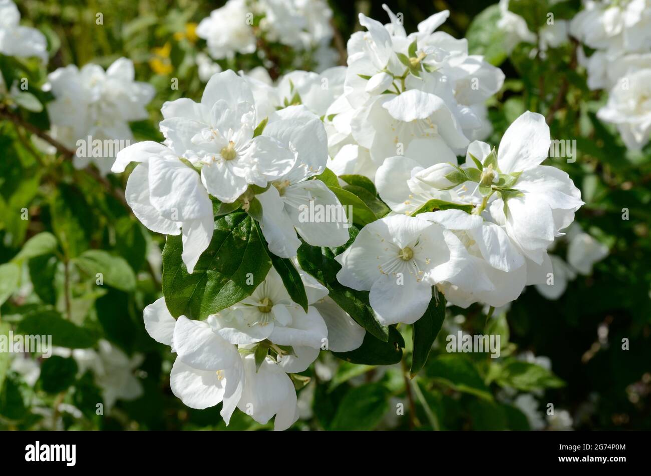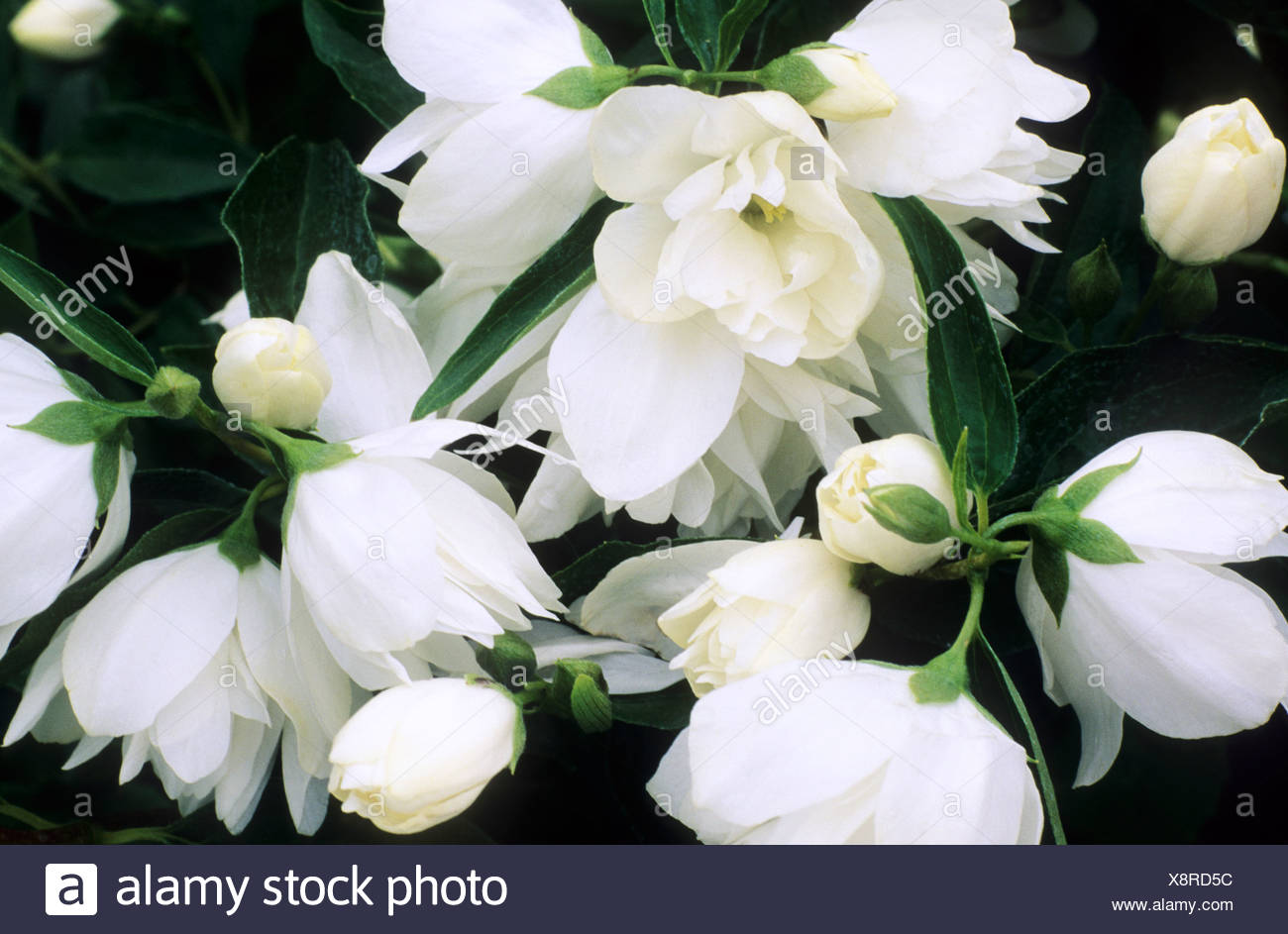 Philadelphus 'Mrs E. L. Robinson' white fragrant flowers garden plant Stock Photo Alamy