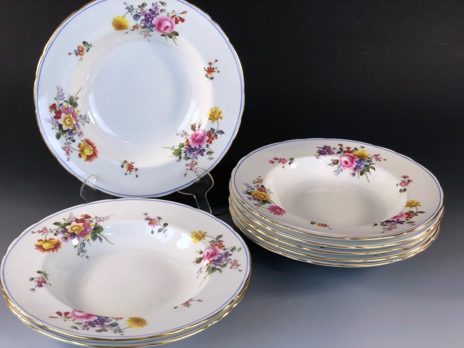 Antique ROYAL CROWN DERBY Derby Posies Pattern 8 pcs 8.25 Soup Plates Surrey Shape