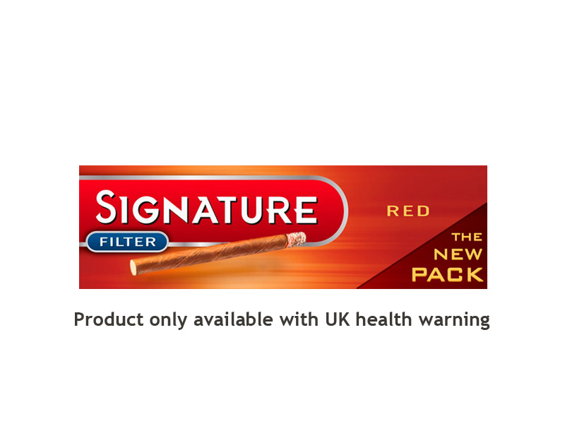 Signature Red Filter cigarillo is a filter proposition, wrapped in an Ecuadorian wrapper. The cigarillos come with a 10-pack easy to open cardboard packaging. Produce of. Made in EU. Net Contents. 10 x Cigars. Safety Information.