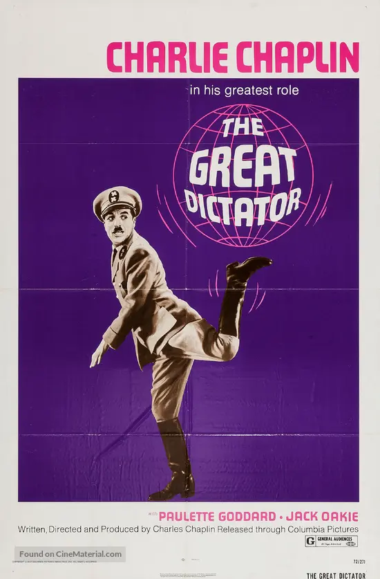 The other is the great dictator, Hynkel, a brilliant lampoon of Adolph Hitler that is awesome proof of Chaplin's pantomime genius. The movie's famous highlight comes in its final scene, when Chaplin steps out of character and addresses the camera with an eloquent plea for the triumph of reason and humanity over mindless militarism.