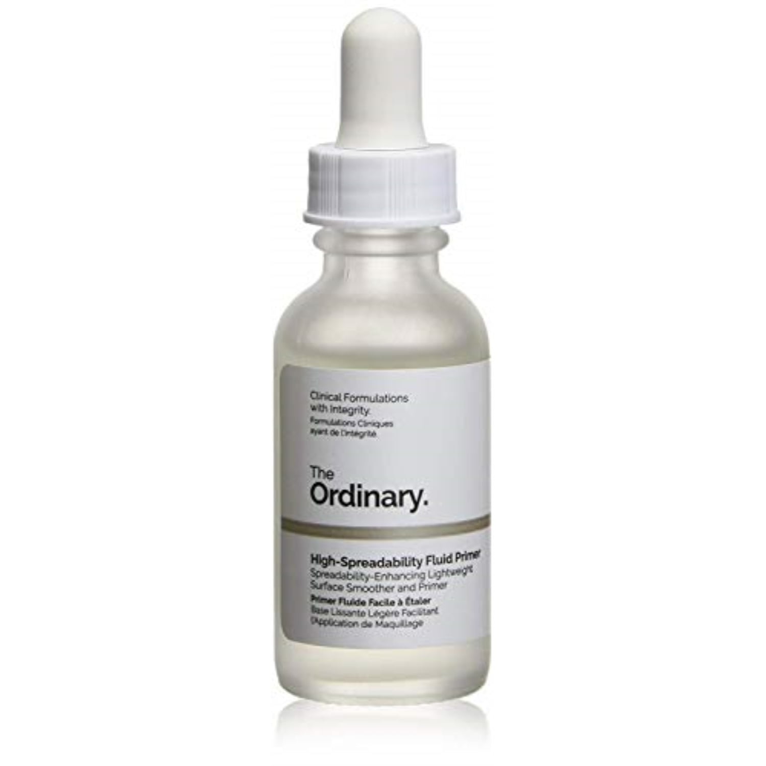 The Ordinary High-Spreadability Fluid Primer is a lightweight serum-like formula that increases the spreadability of makeup to help avoid the unnatural and uneven accumulation of pigments.. High-Spreadability Fluid Primer helps create a smooth base for longer-lasting makeup application. This next-generation primer increases the spreadability.